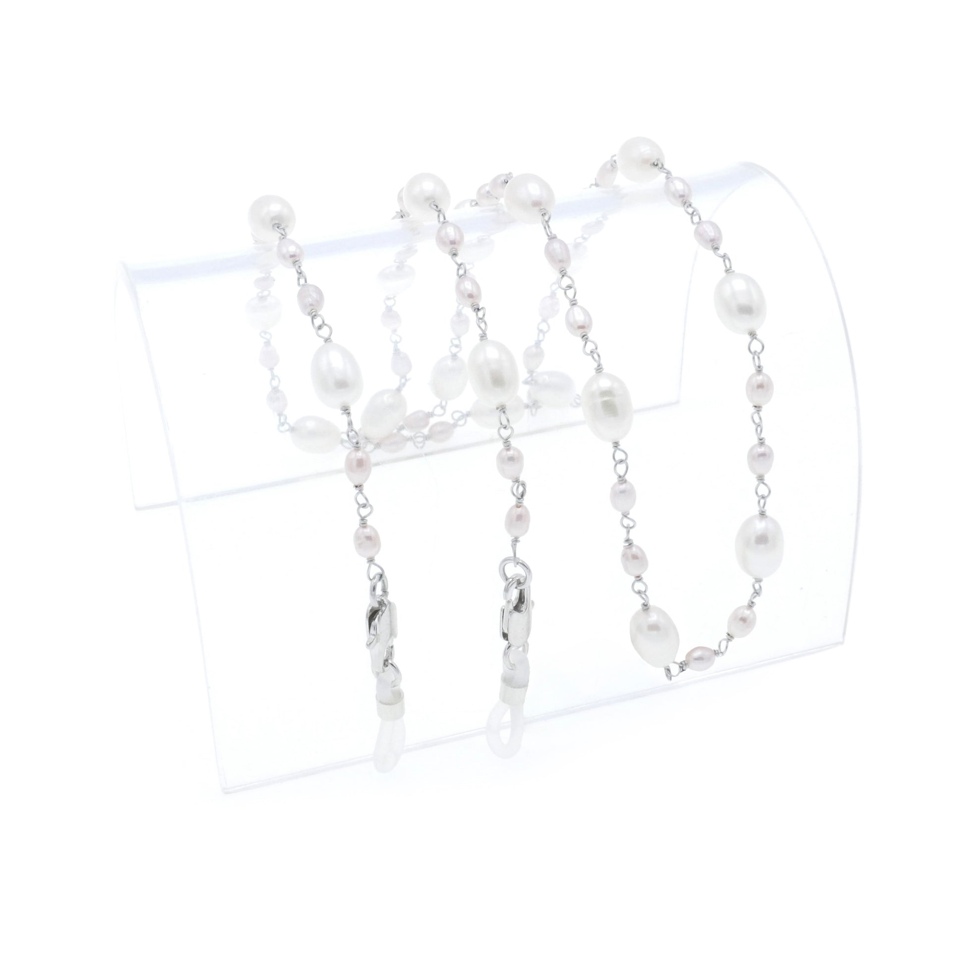Freshwater pearls, clothed securely in pure stainless steel.